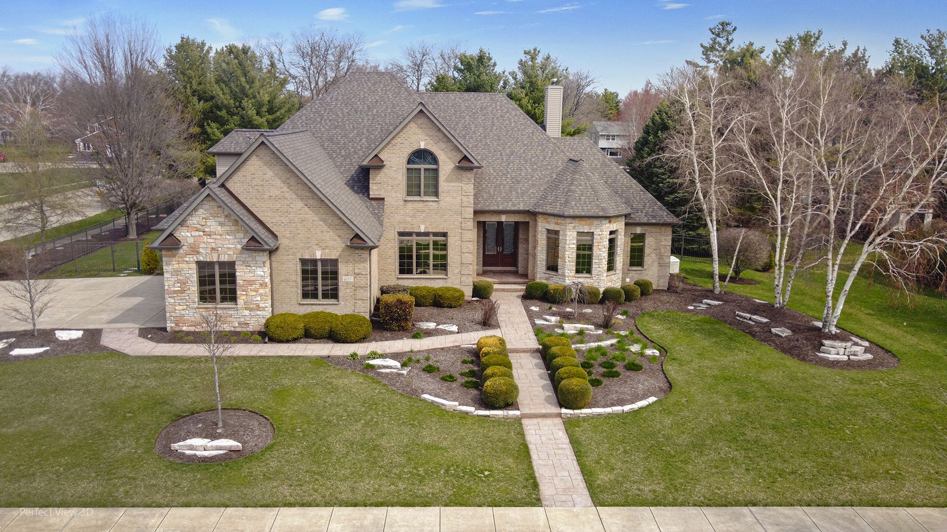 YOUR DREAM HOME AWAITS! A luxury home in desirable Krpan's Parkside Estates, situated on a .48-acre lot with beautiful brick and stone exterior, stamped concrete patio, professional landscaping, sprinkler system, natural gas grill, and fenced backyard. This stunning home features 5 bedrooms, including 2 master suites, and 4.5 bathrooms. A grand two-story foyer welcomes you into a dramatic living room with floor-to-ceiling brick fireplace and expansive windows. The gourmet kitchen offers concrete countertops, custom cherry cabinetry, island with wine bar, Wolf 5-burner cooktop, built-in convection oven, stainless steel appliances, and a bright sunroom-style eating area with direct backyard access. The main-level primary suite includes a sitting area with a 14' custom wood turreted ceiling and a spa-like bath with whirlpool tub, separate shower, and dual vanities. Additional highlights include an elegant dining room/office with French doors, a hearth room with second fireplace, Brazilian hardwood floors, volume ceilings, custom millwork, and a main-level laundry room. Upstairs features three spacious bedrooms, including a junior suite with private bath. The finished basement offers a bedroom, full bath, wet bar, and large recreation space. Additional features include Andersen windows, dual HVAC systems, whole-house generator, security system, and a heated 3-car garage with basement access.